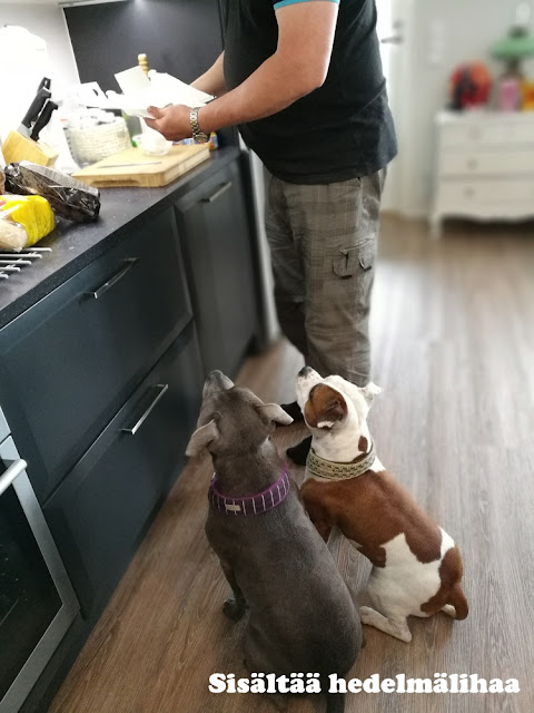 Nää oottaa keittiössä että jäätelö valmistuu (kestää siis viis tuntia pakkasessa...)
