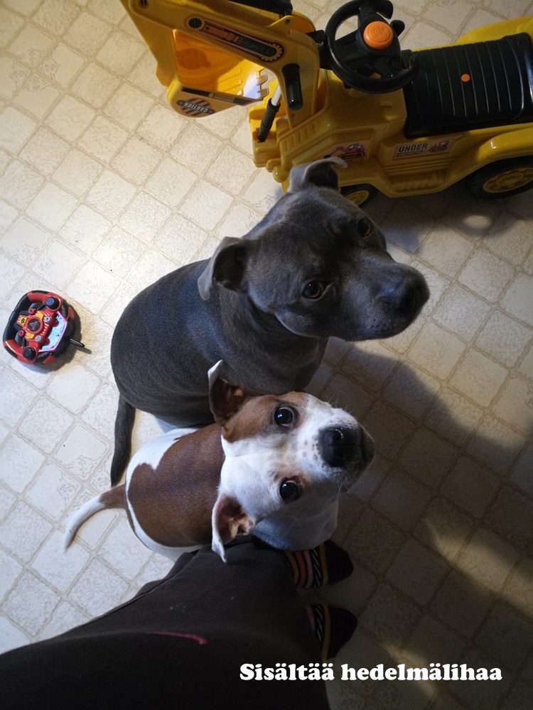 Mä ajattelin vielä pitkään, että kyllä se siitä rauhoittuu kun vaan päästään treenaamaan useammin ja sille tulee se rutiini. Kun pääsen purkamaan sitä kunnolla, kun ei tarvi pelätä sen fysiikkaa tai jotain. Mut ei. Joskus tossa alkusyksyllä se varmaan oli kun mä rakensin ruutua ja annoin Luumun hengailla siinä kentällä. Ja se huusi. Piippasi, kuten ehkä tavallisten koirien kohdalla sanottaisiin, mut Luumu huusi. Ja se on staffiksi hiljainen koira, se on koiraksikin hiljainen koira. Eli nyt oli oikeasti tehtävä jotain muutoksia.